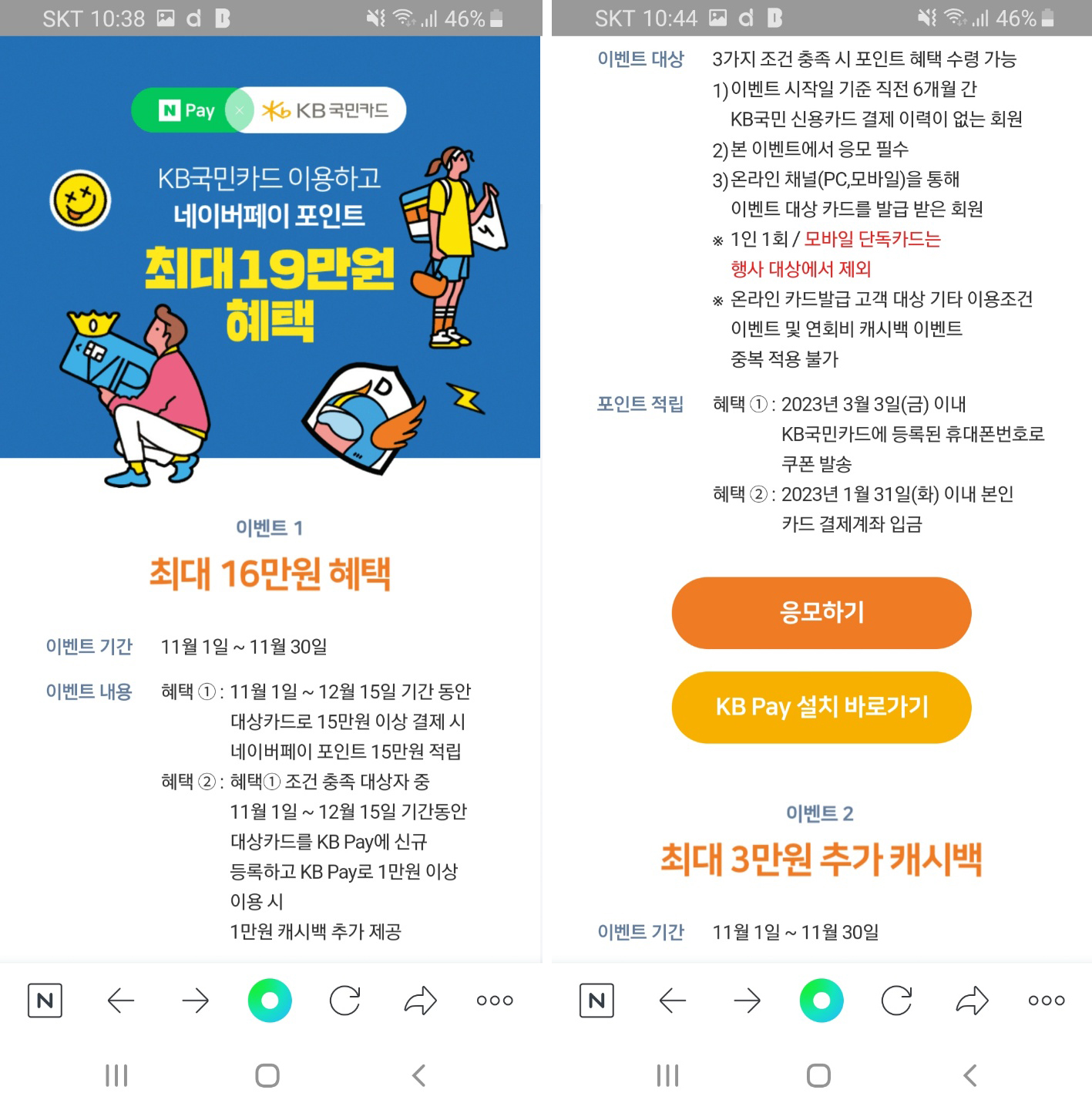 저는 네이버페이에서 최근 혜택들을 찾아보고 있어 네이버페이 기준으로 알려 드립니다.