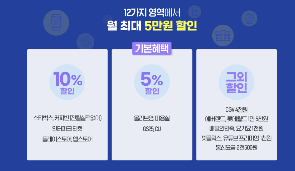 그리고 매월 전월실적요건 없이도 스타벅스 10% 할인을 해줍니다.