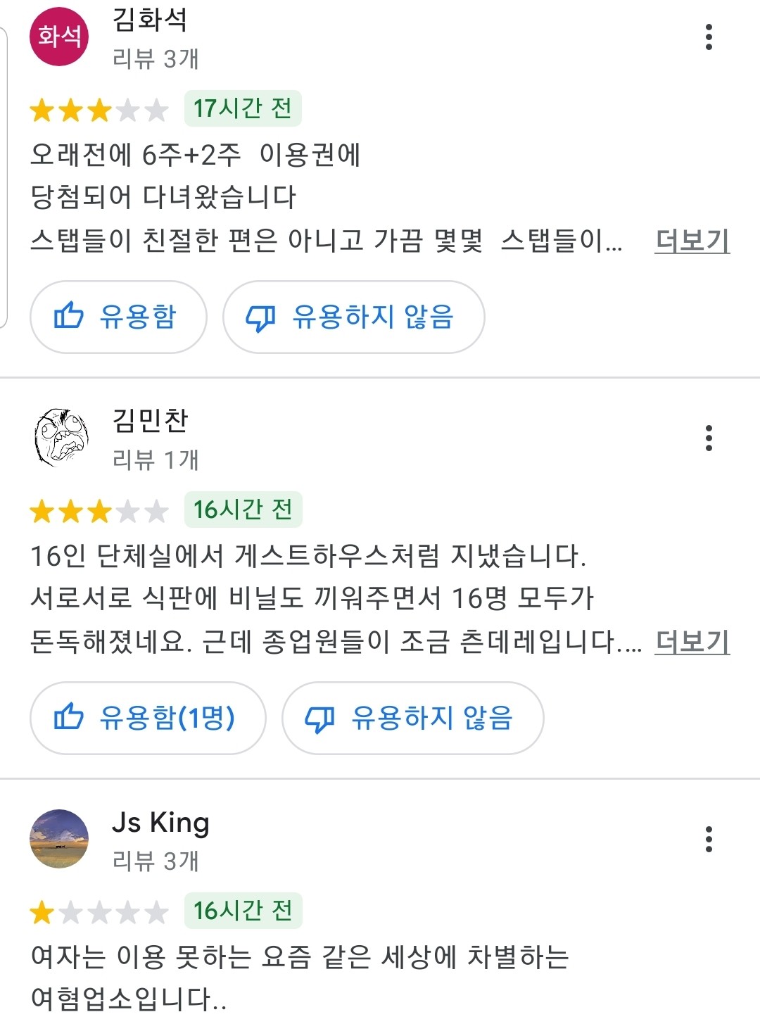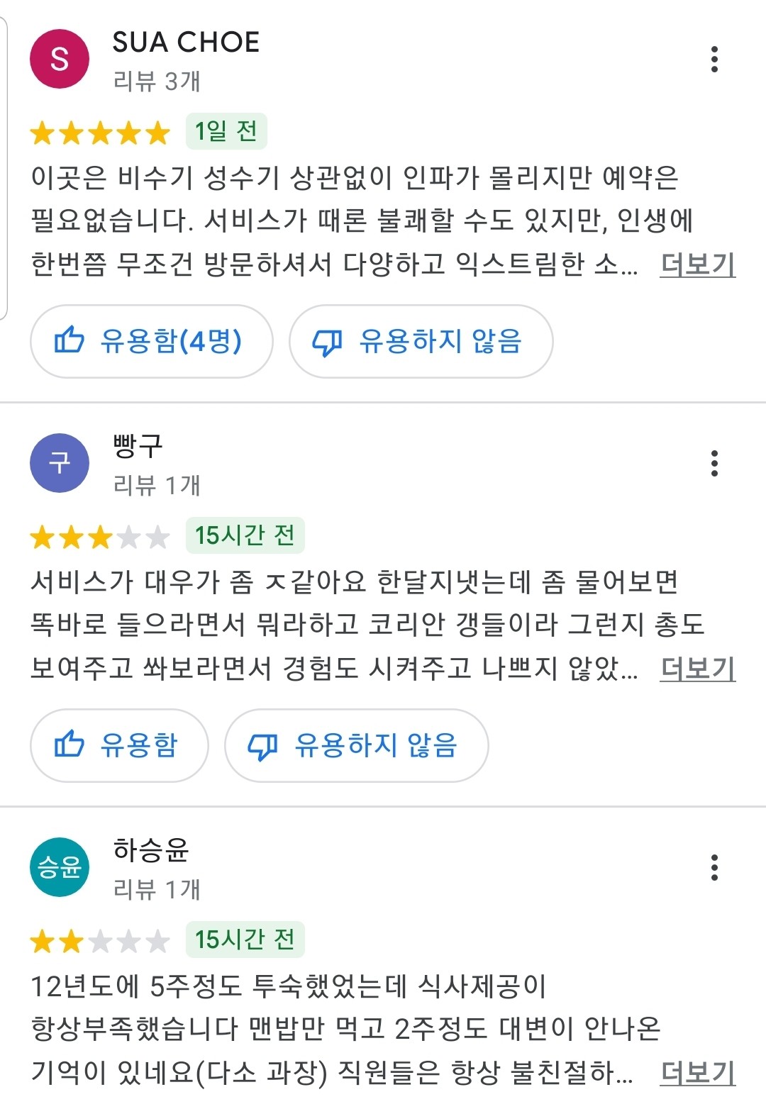 요즘 이 곳 시설이랑 많이 좋아진 것 같은데 아직도 호불호가 많이 갈리는군요. 직원들 마인드는 아직도 별로인가봐요. 특이하게 손님한테 소리를 잘 지르더라고요. 가실때 꼭 바우처 프린트 해서 가셔야 됩니다.그래도 여기 여행 갔던 시절이 인생에서 가장 좋았던 시절인 것 같아요. 최근 다녀 오신분 있을까요?