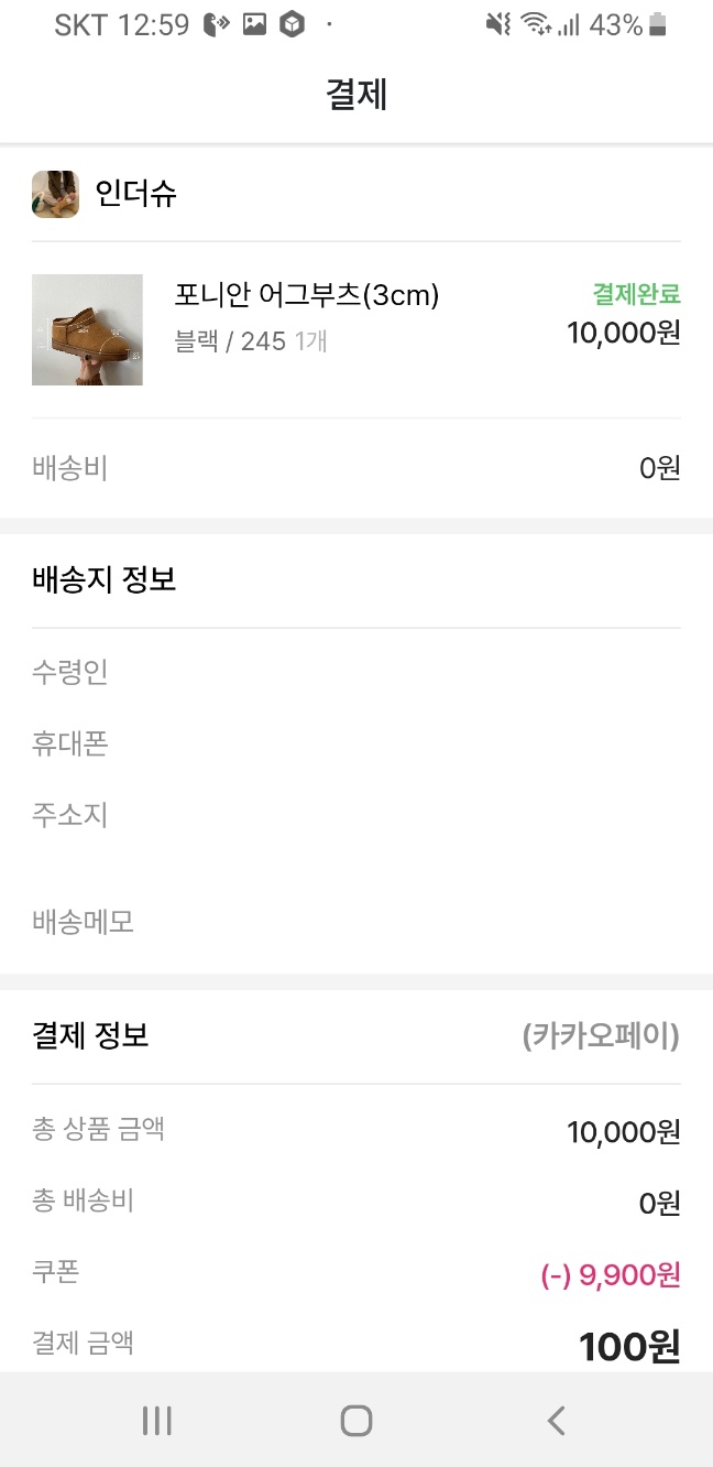 오늘 100원딜 성공해서 어그부츠 하나 공짜로 겟 했습니다.
